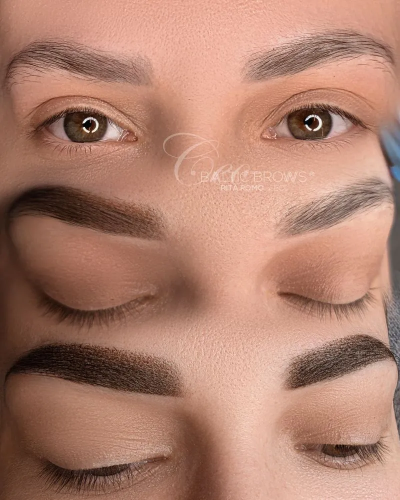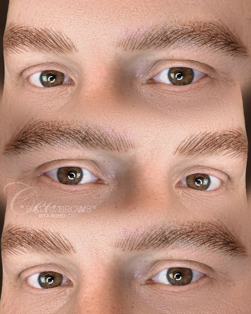 *Plaukeliai + šešėliavimas antakio apačioje arba pagal poreikį, taip sukuriant šiek tiek stipresnį ir ryškesnį antakių efektą.